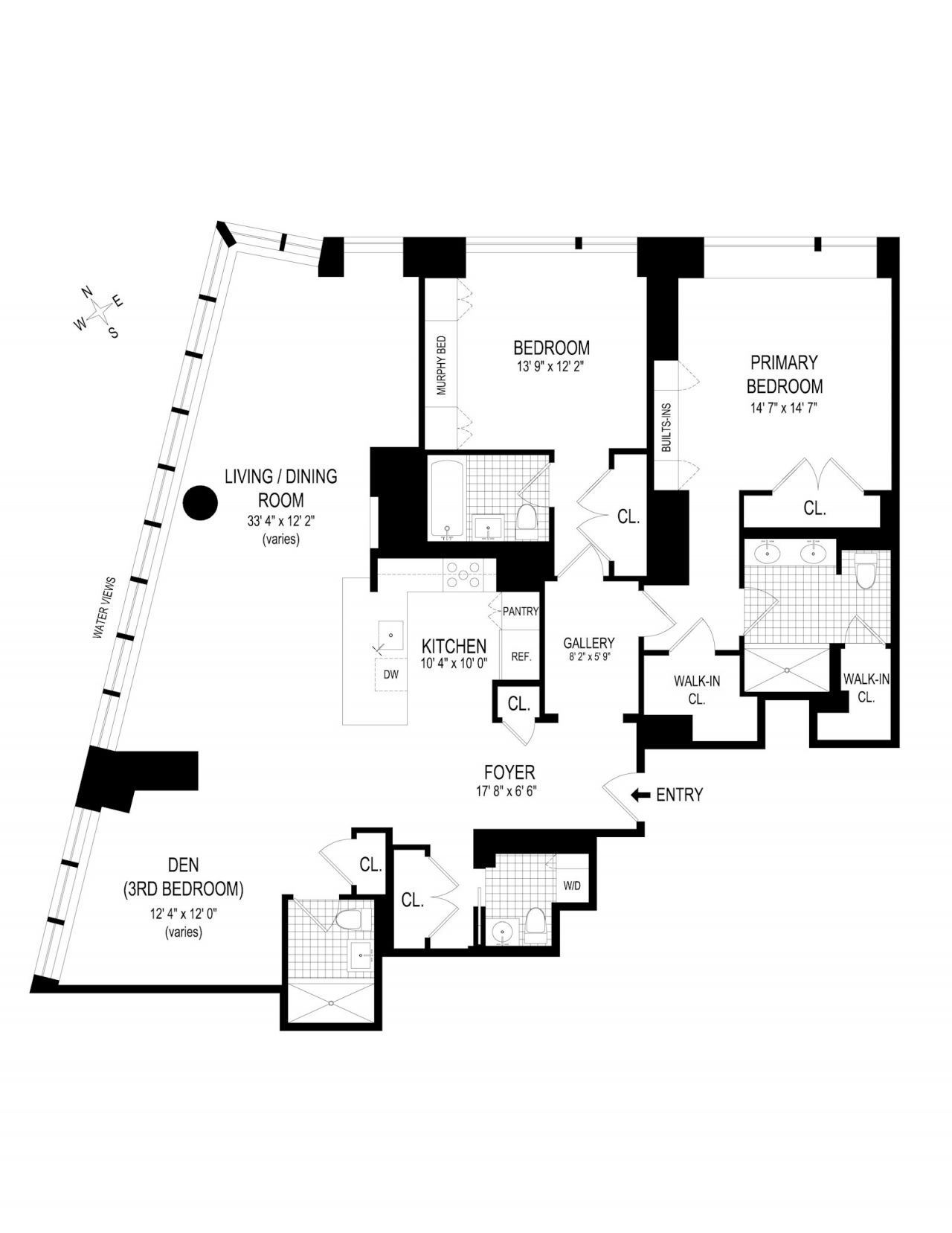 Originally built as a three bedroom the current owners opted to remove the wall and extend the living area. Can easily be turned back into a magnificent 3 bedroom 3.5 bathroom residence. Washer/dryer in unit.