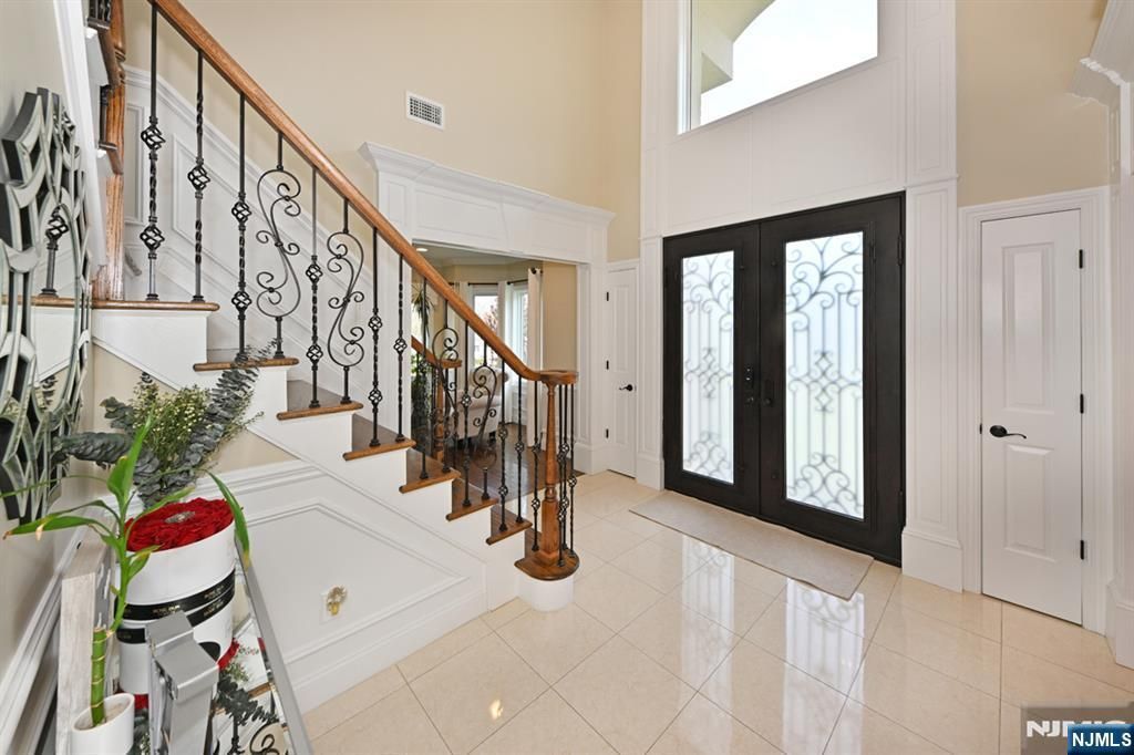 Welcome to this sophisticated, 10-year-young Colonial, where timeless design meets modern luxury in prime Paramus. A grand cast iron door opens to a dramatic 2-story entry foyer. The 1st flr features a formal living room & dining room, a stunning 2-story family room w/ gas fireplace. A 1st-floor bedroom w full bath offers flexibility for guests or extended living. The stylish, modern kitchen is designed for everyday living & entertaining w/ sliders out to the patio. A thoughtfully designed second level has: Jr. suite w/ full bath, 2 more ample bedrooms, a full bath, and convenient laundry. The primary suite has a luxurious bath & two walk-ins. The landing w/ view to the family room enhances the open, airy feel. A finished walkout basement offers an impressive extension of living space, complete with full-size windows, vinyl plank flooring, and additional full bath???ideal for recreation or entertaining. Lots of upgrades, including central vac, 3-zone A/C, sprinkler system, generator, solar panels and 2-car garage. Outside, enjoy a beautifully landscaped yard with a paver driveway and dual EV charging stations. Your private backyard oasis awaits, w/ a heated saltwater pool, serene zen fountain, an outdoor kitchen w/ seating, and a covered patio???perfect for relaxing or hosting unforgettable gatherings. All of this a stone??????s throw from a Blue Ribbon Award-winning elementary school, makes this exceptional home a rare opportunity you won??????t want to miss.