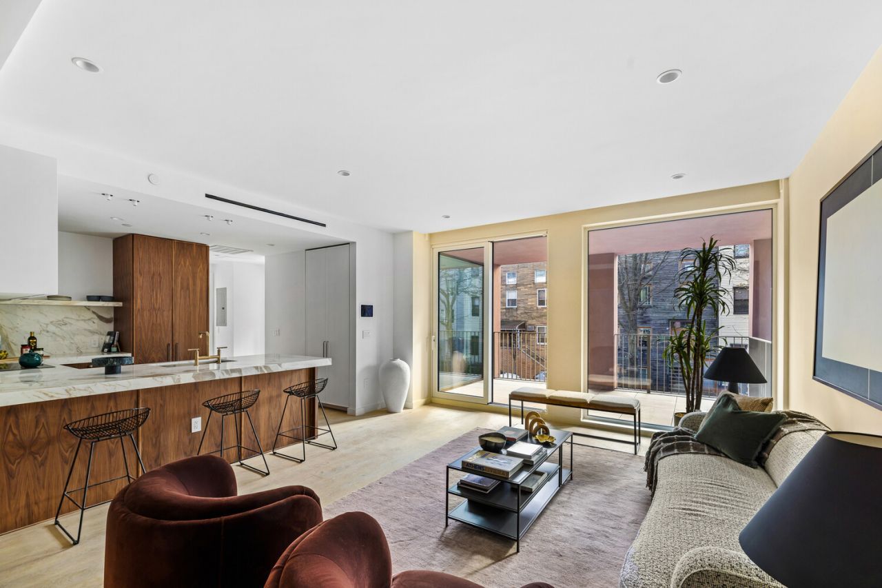 109 Devoe Street is a modern residential building defined by distinctive architecture, elongated proportions, and an emphasis on light and openness. The facade combines natural stone finishes with expansive, sweeping windows that allow daylight to move freely through the interiors. Elongated window lines reinforce the building's verticality and give the exterior a refined, contemporary presence that feels intentional and unique within the streetscape.