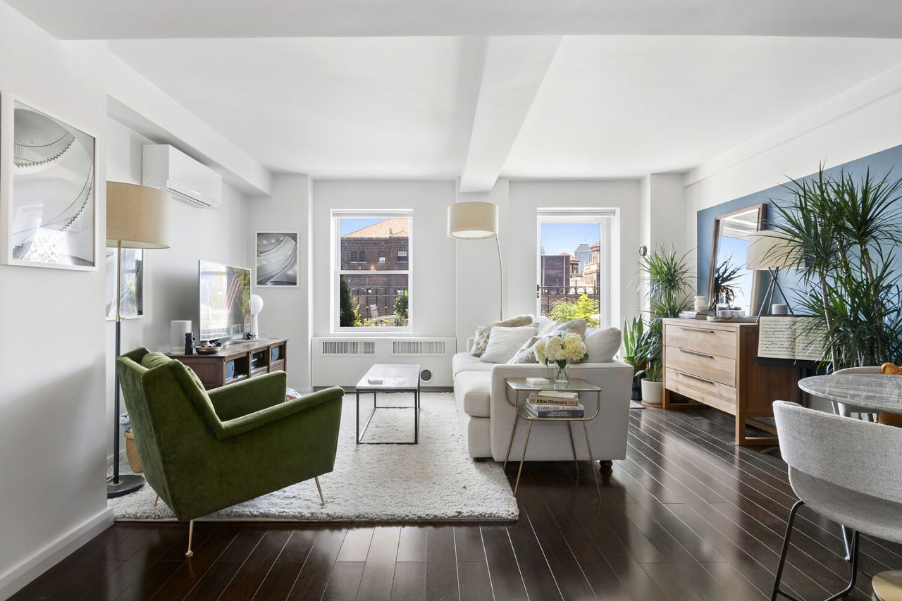 This Brooklyn Heights one-bedroom one-bathroom corner apartment with a terrace with Manhattan and water views is a unique opportunity and has been described as a unicorn by neighborhood brokers.