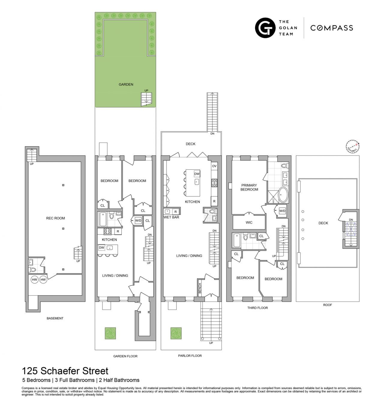 Welcome to 125 Schaefer Street, a newly renovated two-family townhouse that blends Brooklyn character with modern sophistication. Tucked away on a quiet, tree-lined block in the heart of Bushwick, this stunning home spans over 3,000 square feet and offers five bedrooms and five baths across two spacious residences?perfect for end users, investors, or anyone craving flexibility in their living space.Just completed with a full-gut renovation, every detail has been thoughtfully designed?from the warm oak floors and custom millwork to the designer lighting and high-end finishes throughout. The result is a home that feels both modern and timeless, where prewar charm meets contemporary comfort.The owners duplex is the heart of the home, featuring an expansive open parlor floor thats made for entertaining. The living area flows into a sleek chefs kitchen with floor-to-ceiling wood grain cabinetry, brushed gold hardware, double wall ovens, and brand-new stainless steel appliances. The large island with Taj Mahal quartzite countertops is perfect for casual dining or hosting friends, while the accordion glass doors open wide to a private deck overlooking the beautifully landscaped backyard?creating that seamless indoor-outdoor lifestyle everyone dreams of. A chic wet bar in the dining area makes entertaining effortless, and the layout offers generous space for both lounging and dining.Upstairs, the bedroom level offers peace and privacy. The primary suite impresses with a spa-like en-suite bath featuring a double vanity, soaking tub, and rain shower. Two additional bedrooms and a full laundry room complete this floor. Follow the sunlit staircase crowned by a skylight up to the private roof deck, where youll enjoy Manhattan skyline views?the perfect perch for morning coffee or sunset cocktails.The finished cellar adds even more versatility, offering a generous recreation space with direct access to the backyard?ideal for a gym, home theater, or playroom.The garden-level apartment is a bright and inviting space with its own modern kitchen, two bedrooms, and access to the backyard. Use it as an income-producing rental, in-law suite, or private guest quarters?the choice is yours.Located just moments from local favorites like Sally Roots, Bushwick Public House, Dweebs Café, and Honeys, youll love the creative energy and community spirit that define this neighborhood. Enjoy easy access to the L, J, and Z trains, getting you to Manhattan or Williamsburg in minutes.Whether youre looking for a dream home to grow into or a smart investment with long-term value, 125 Schaefer Street delivers it all?space, light, luxury, and that unmistakable Brooklyn charm.Come see it, and fall in love.