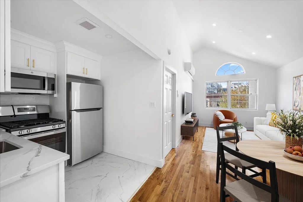 Welcome to this beautifully renovated 3-bedroom, 2-bath apartment at 1259 Rogers Avenue in the heart of Flatbush. This bright and spacious home features large windows that bring in great natural light and tall, slanted ceilings that add character and a sense of openness throughout. The expansive living room offers plenty of space for both lounging and dining, seamlessly connecting to the modern open kitchen with sleek finishes, full-size appliances, and ample cabinet storage. Each of the three bedrooms is well-proportioned, with large closets and great light, while both bathrooms have been fully updated with contemporary tile work and fixtures.