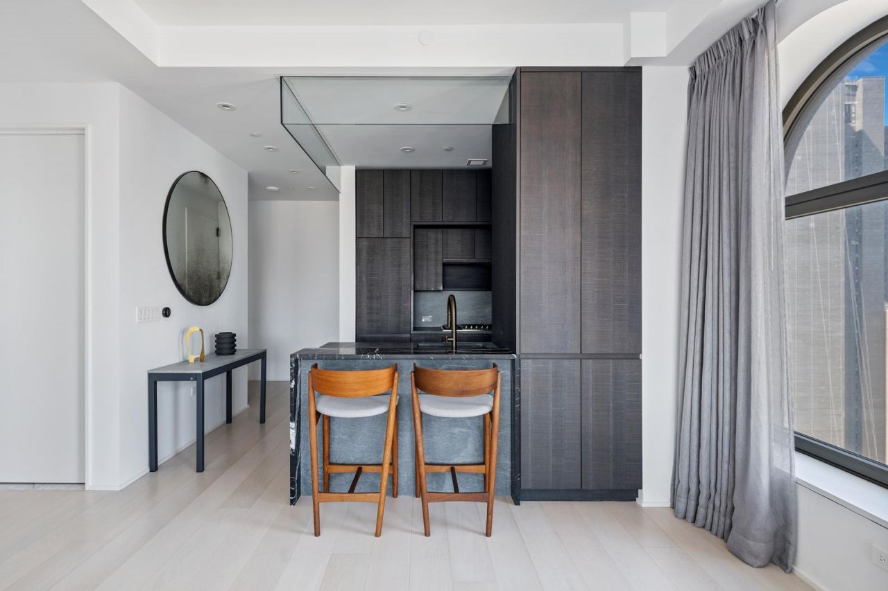 Designed by renowned architect Sir David Adjaye, the residence exudes refined luxury with wide-plank white oak flooring and bespoke oil-rubbed bronze fixtures throughout. The open-concept kitchen is a masterclass in modern elegance, showcasing custom Pedini Italian cabinetry in textured blackened oak, Salvatori Pietra Cardosa marble countertops and backsplash sourced from the Apuan Alps in Tuscany, and a sculptural Salvatori Nero Marquina cantilever detail. Complete with premium Gaggenau, Bosch, and Thermador appliances.