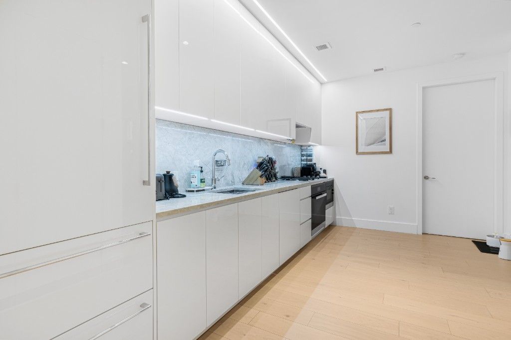 Residence 5D features 10 foot ceilings, an open living space, and a full-size washer and vented dryer complete the package. Warm elegant interiors feature high ceilings, wide-plank white oak floors, quartzite kitchen countertops, Gioia Venatino marble bathrooms, and custom millwork throughout. Nearly 20,000 square feet of thoughtfully planned amenities, designed by AD 100 designers Pembrooke & Ives, includes ample indoor and landscaped outdoor gardens and roof terrace (7,000 square feet), spaces for entertaining, dining, fitness, and leisure activities to suit every taste.