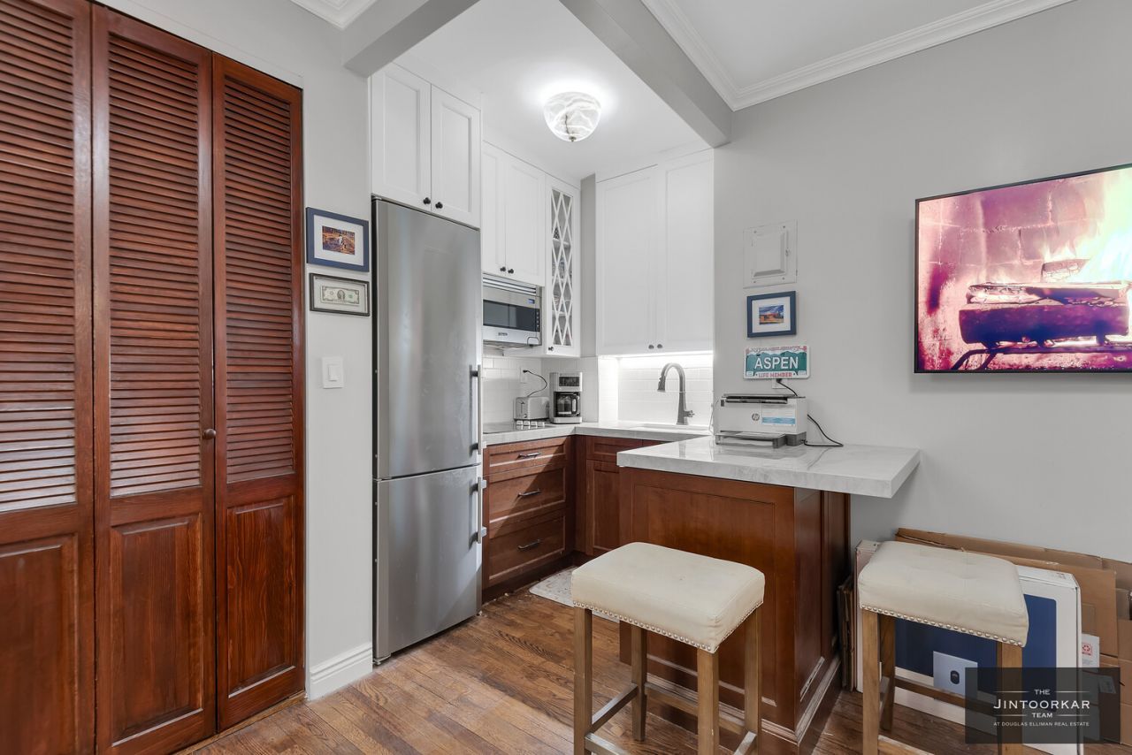 Apt 3B boasts an array of modern key unit features designed for both comfort and functionality. The kitchen is equipped with stainless steel appliances, including a Blomberg refrigerator, complemented by quartz countertops and a subway tile backsplash. The inclusion of a farm sink adds a touch of elegance, making this space ideal for culinary enthusiasts.