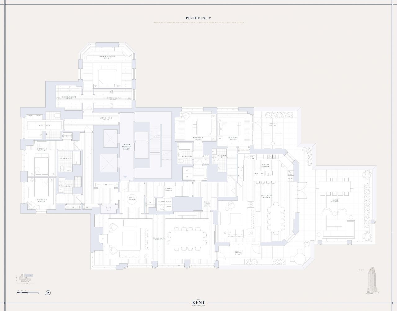 Penthouse C at The Kent ? Trophy Residence with Iconic Views Introducing Penthouse C, brand new crown jewel at The Kent, an Extell-developed luxury condominium in the heart of Carnegie Hill. This extraordinary 5,188 SF duplex features 5 bedrooms, 5.5 bathrooms, and 1,466 SF of private outdoor space, offering panoramic views of Central Park, the East River, and the Manhattan skyline. Designed by Beyer Blinder Belle and Alexandra Champalimaud, the residence boasts 14 ceilings, a 44 Grand Salon with Italian marble fireplace, wall-to-wall floor-to-ceiling windows, and seamless indoor-outdoor flow. The chefs kitchen features Montclair Danby marble, Miele appliances, and opens to a terrace perfect for al fresco dining. The private primary suite includes a windowed hexagonal bedroom, two large dressing rooms, and a 5-fixture Bianco Dolomiti marble bath. Four additional bedrooms each feature en-suite baths, ideal for guests, family, or a home office setup. The Kent offers 5-star amenities: 24/7 concierge, 55 indoor pool, fitness center with saunas, resident lounge, Kravitz-designed Sound Lounge, childrens playrooms, and landscaped courtyard. Prime location near top schools, parks, and the best of the Upper East Side. Tax abatement in place through 2039.
