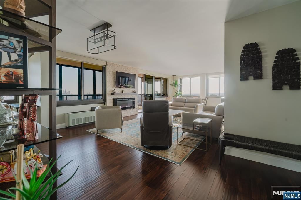 Welcome to luxury living at Winston Towers. This beautifully updated 3-bedroom, 3-bath residence on the 23rd floor offers nearly 2,000 sq ft of sun-drenched living space with panoramic views of the NYC skyline & Hudson River from nearly every room. Step inside to an expansive open-concept living & dining area featuring upgraded wood flooring throughout & oversized windows with custom shades from The Shade Store. The space flows seamlessly to a private enclosed terraceâ?¬perfect for morning coffee, entertaining guests, or unwinding with evening city views. The upgraded kitchen is thoughtfully designed with sleek cabinetry, Bosch appliances & generous counter space, complemented by a built-out pantry with custom shelving from The Container Store. The spacious primary suite offers a spa-inspired bathroom fully tiled & upgraded with Porcelanosa finishes, along with custom California Closets. Two additional bedrooms are well-proportioned, each with access to updated full bathrooms with high-end finishes. Enjoy full-service living including 24-hour concierge, pool, tennis courts, fitness center, EV charging stations & on-site management. Residents also benefit from complimentary Spectrum internet & premium cable TV ($250/month value), with covered parking available for an additional fee. Located just minutes from NYC with easy access to NJ Transit & ferry optionsâ?¬ideal for commuters seeking luxury, space & convenience.