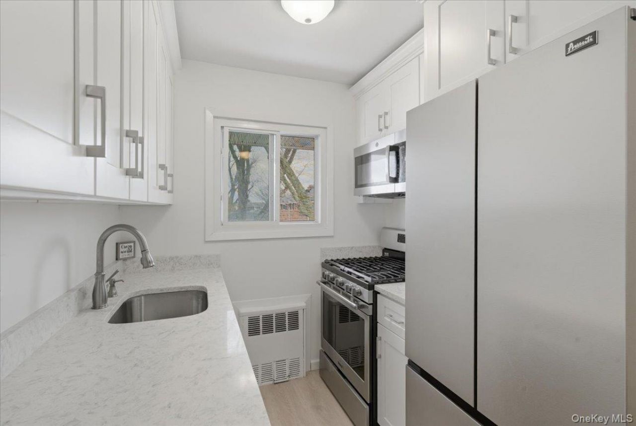 Welcome to this pristine, move in ready, deluxe 1 bedroom! Location is key for this 2nd floor, corner unit. Enjoy your spacious living and dining area filled with natural light. The brand new eat in kitchen kit features custom cabinets, quartz countertops, gas cooking, SS appliances and and brand new floors. Bathroom has been updated. The oversized primary bedroom is big enough for a king size bed and features two double closets. Located in a well-maintained building, with park-like grounds, an on-site laundry room, storage closets, and inground pool exclusive for residents only, close to shopping, restaurants, highways, schools, parks, LIRR. The option to sublet after 2 years of ownership is the perfect investment opportunity if you're looking for one. This Co-op community has it all!! Pet Friendly Community!!