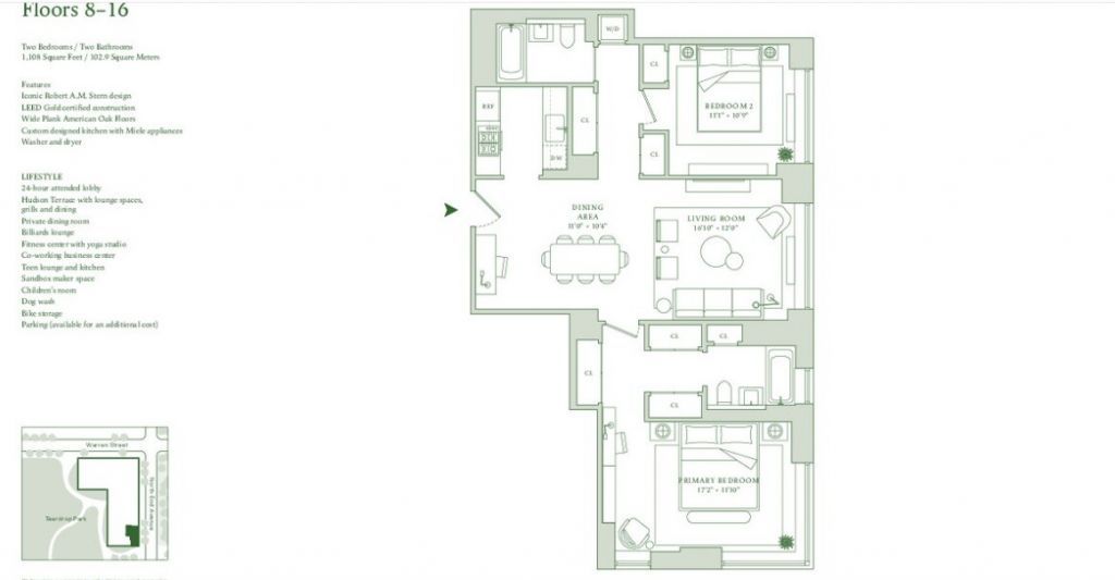 210 Warren Street , Unit 9G, Manhattan, NY 10282.