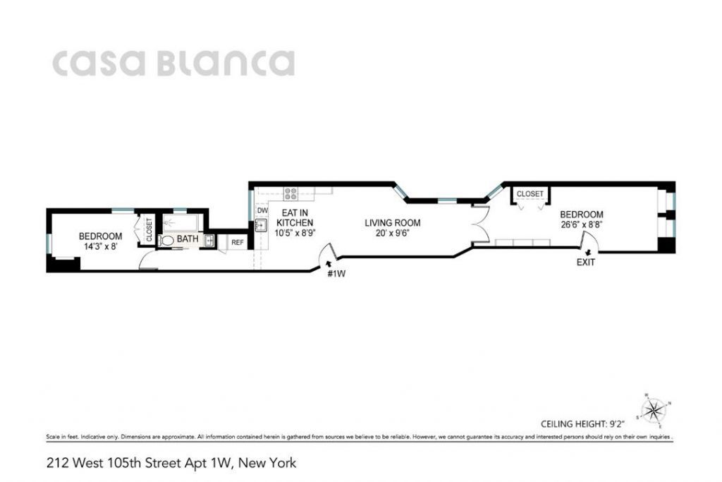 212 W 105th Street , Unit 1-W, Manhattan, NY 10025.