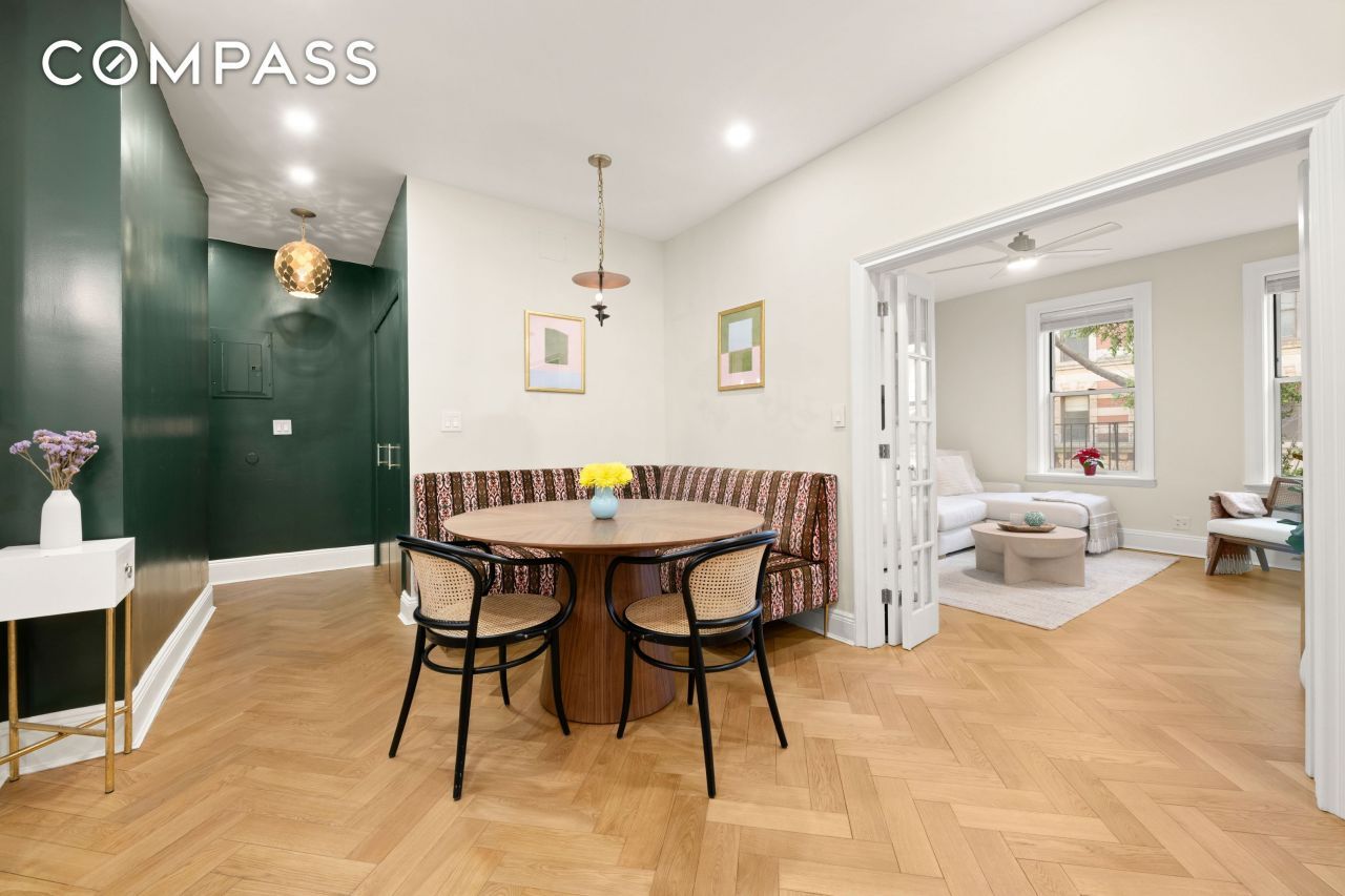 Welcome to Apartment 2B at 233 West 21st Street?a south-facing pre-war gem that seamlessly blends classic charm with modern luxury.This thoughtfully renovated 2-bedroom plus home office showcases beautiful herringbone hardwood floors throughout and has been meticulously updated by the current owners with both style and functionality in mind.The windowed, open kitchen is a true standout, featuring stainless steel appliances, a breakfast bar, and abundant custom cabinetry offering exceptional storage. The stylish bathroom is finished with timeless subway tile, chic patterned flooring, and a bathtub.Set on a picturesque, tree-lined block, 233 West 21st Street offers a storybook setting in the heart of Chelsea?one of Manhattans most vibrant and historic neighborhoods. Enjoy effortless access to world-class dining, shopping, schools, nightlife, and the iconic High Line.This pet-friendly pre-war co-op pairs historic character with modern conveniences, including an elevator, Butterfly virtual doorman system, new washers and dryers, a charming courtyard with covered bike storage, and a rooftop deck that feels like your own secret garden in the sky.
