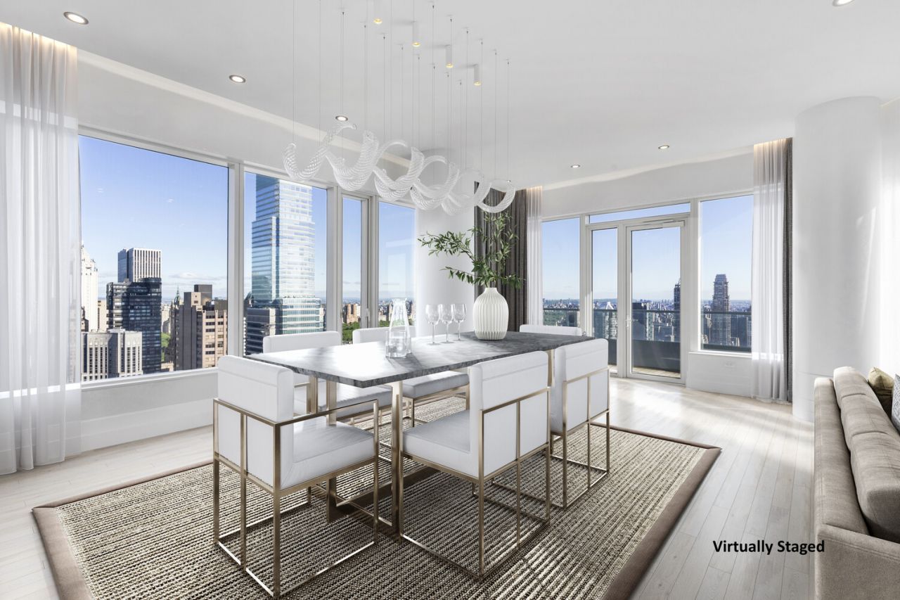 With interiors by Daniel Romualdez, this beautifully appointed 3 bedroom/3.5 bath, 2,621 sq ft home is highlighted by oversized windows offering north and west exposures with expansive city views which include Central Park.