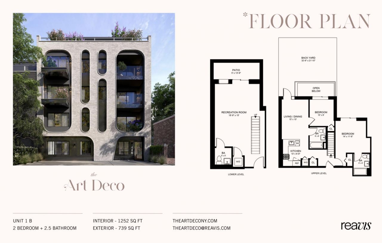 Enjoy the best of Prospects Lefferts Gardens and Crown Heights in this luminous 2-bedroom, 2.5-bathroom duplex condo at The Art Deco. Residents have access to abundant restaurants, bars, cafes, and shops and are minutes from Prospect Parks tree-lined walking paths, picnic lawns, and athletic fields.