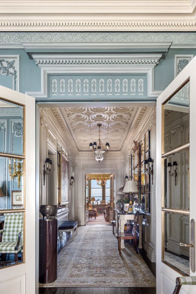 Versailles in the Sky. A rare European-style estate high above Park Avenue, commanding sweeping 360-degree views. Fully turnkey following a five-year, ten plus million-dollar renovation, executed by Doyle & Achinson, featuring hand-crafted boiserie, Italian marble, an Officine Gullo kitchen, and three bedrooms with en-suite baths. Offered fully furnished with fine antiques. Interior design by Miles Redd.