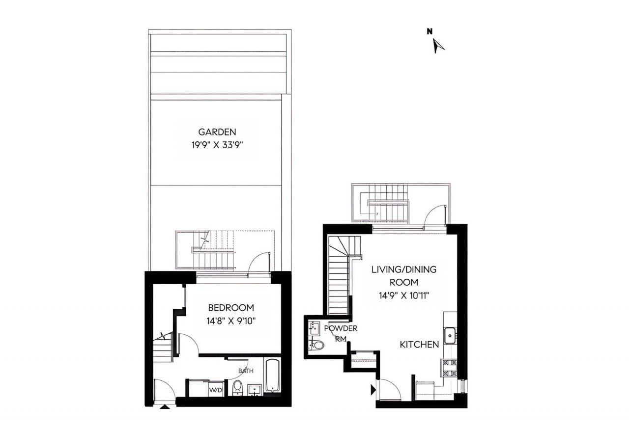 Welcome to 5 W 127th St Unit 1B, where a very special private outdoor oasis awaits ? a rare retreat in the heart of the city. Whether youre hosting summer gatherings, creating a lush garden sanctuary, or simply enjoying a quiet morning coffee, this expansive outdoor space offers endless possibilities for relaxation and entertaining.Inside, classic sophistication meets modern comfort in this meticulously maintained duplex condo. Step inside to high ceilings that amplify the sense of openness within the thoughtfully designed layout. Northern-facing dual-pane windows fill the living area with soft natural light, creating an inviting and cozy ambiance. The sleek kitchen, complete with a dishwasher, integrates seamlessly with the living space, perfect for both daily routines and entertaining. A conveniently placed half bathroom on the main level adds ease and practicality.Downstairs, youll find a spacious bedroom featuring dual closets for generous storage, along with a full bathroom just steps away. The in-unit washer and dryer provide unmatched convenience.Residents enjoy access to sought-after amenities, including a fully equipped gym, a secure bike room, and an elevator. A voice intercom system adds an extra level of security, while the shared rooftop deck offers a serene escape with skyline views.With central air conditioning and heating, this remarkable condo ensures comfort throughout every season.