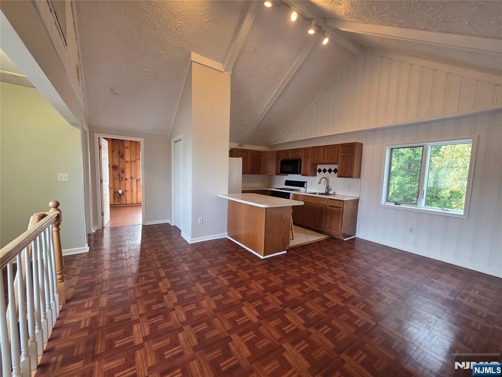 Welcome to this bright and spacious rental in the heart of East Rutherford. This well-maintained home features a unique and airy layout with vaulted ceilings, large windows, and plenty of natural light throughout. The open-concept living and kitchen area creates a comfortable space perfect for everyday living and entertaining. The kitchen offers ample cabinetry, a breakfast bar, and functional layout. The unit includes space, updated flooring, and a clean bathroom. A private entrance and additional lower-level access provide flexibility and convenience. Located on a quiet residential street, yet just minutes from major highways, shopping, restaurants, and NYC transportation ??? making this an ideal commuter location. 2 parking space Share backyard Prime East Rutherford location Easy commute to NYC