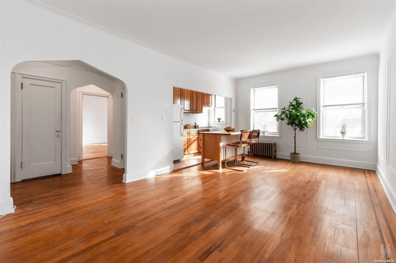 Edit mortgage details for a more accurate paymentDiscover this charming one-bedroom co-op, nestled in the heart of Woodside. With classic pre-war details, this home offers comfort and convenience. As you step inside, youll find 9-foot ceilings and windows in every room, adding to the airy feel. The southeastern exposure provides ample sunlight across the spacious living area and hardwood floors throughout create a warm, welcoming atmosphere. The kitchen has beautiful wooden cabinetry while a butcher block center provides a great area for prepping. The bedroom is large enough to fit a king-sized bed, offering plenty of space to relax. The unit has a total of three closets, making storage a breeze. The co-op building offers a landscaped front courtyard, a grand lobby, brand-new elevators, and laundry in the basement. There is also a full-time super and the opportunity for onsite parking when available. The commute to midtown Manhattan is super quick on the 7 express train, LIRR or the express bus, which stops right on the corner of building. The incredibly low maintenance is just $645.50 per month. Pets under 25 pounds are allowed and a 20% down payment is required. Make this cozy, character-filled home yours and enjoy everything Woodside has to offer! Schedule a viewing today., Additional information: Appearance:Excellent