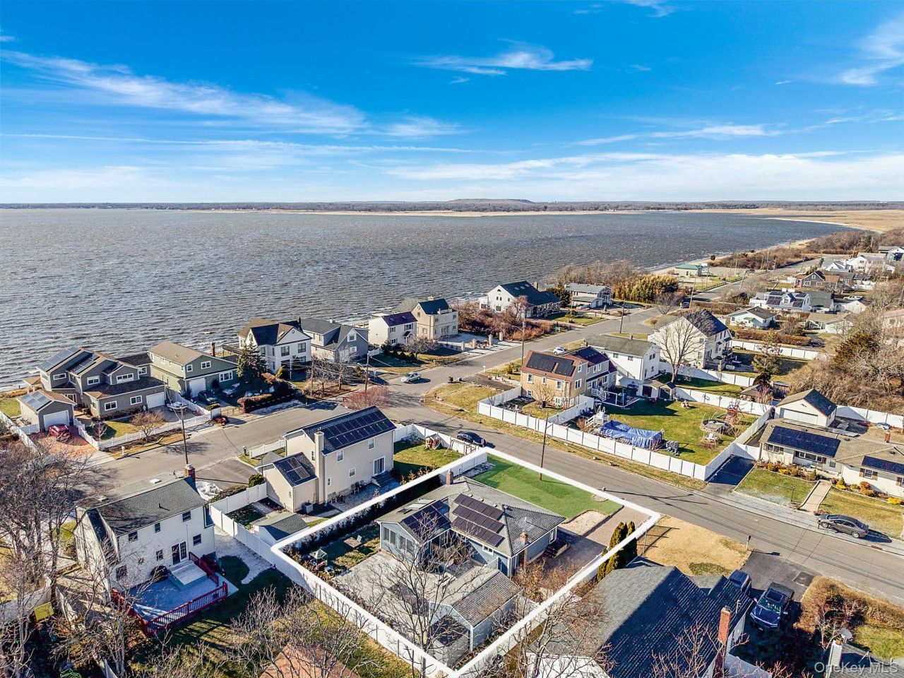 Discover 6 Rugby Drive in Shirley with stunning water views, a resort-style backyard, and major recent upgrades. Inside, the home feels bright, modern, and has an open concept, with 2 bedrooms and 1 full bath (previously configured as a 3 bedroom). Featuring: ductless mini splits (heating & cooling-2 units), gas fireplace with mantel, gas double oven stove, stainless steel refrigerator, ceiling fans, storm doors, chandelier, ample storage, and washer and dryer. Additional highlights include owned solar, solar hot water, and a sunroom with a 6-person indoor HOT TUB. Low utilities with solar and hot water system. Recent updates include a fully remodeled bathroom (2024), two new bay windows in (2024) showcase the water views, other Anderson windows (2) in basement, new blue vinyl siding (2022), new french closet door (2024), fresh paint, new interior doors, baseboards, and recessed lighting inside. Step outside to an entertainer's backyard featuring a brand new Cambridge stone patio (April 2025), custom outdoor granite island, new fire pit, and cabana-style entertainment shed (8x7). Additional outdoor upgrades include new arborvitae privacy trees all around, new deck (2022) recessed exterior lighting, and white PVC fence with 6ft gate and front yard. 1 detached garage for storage, hobbies, or beach gear. Enjoy the rare benefits of no flood insurance required and taxes under $8,000. This home is ideal for a first a time home buyer, or as a potential AirBnB or vacation retreat. Conveniently located just two blocks from Shirley Beach, 2 minutes to Smith Point Marina and Smith Point Beach, and approximately 30 minutes to the Hamptons. Whether hosting summer gatherings, enjoying peaceful mornings by the water, or relaxing under the stars, this home offers the perfect setting to create lasting memories.Don't wait on this opportunity.