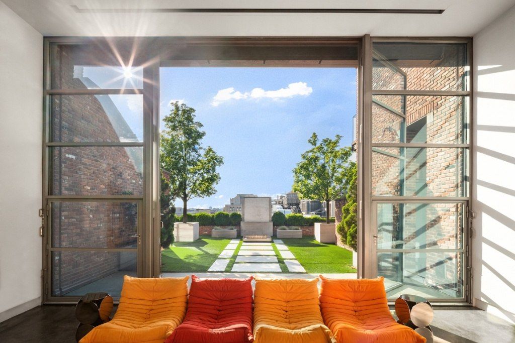 In an elite group of the most rarefied homes in the world, this exceptional penthouse sprawls over 12,000 square feet of private indoor and outdoor space. Five expansive bedrooms and palatial living space occupy an interior 8,000 square feet, while two rooftop terraces and a heated swimming pool spread over an additional 4,000+ square feet. Located in vibrant, coveted Noho, this spectacular home is a study in stunning modernism and traditional design with no expense spared and no detail unconsidered. A home within a home, the palatial first level satisfies the needs of the most discerning connoisseur of high design and ultimate comfort. Bathed in light thanks to a wall of massive arched windows, the enormous, jaw-dropping living room features a hand-carved backlit Onyx bar, and an original 17th-Century Dutch Tudor fireplace. The living room also boasts bespoke wood-coffered and copper leaf barrel-vaulted ceilings, meticulously maintained original cast-iron columns and reclaimed wide plank Oak floors. With a nod to French country kitchens, the chefs kitchen boasts barrel-vaulted exposed brick ceilings, a caesarstone breakfast bar, a custom-built dining nook with south-facing floor to ceiling French-paned windows, as well as top-of-the-line appliances including a La Cornue five-burner range. Remarkable details such as blue marble tiles recovered, incredibly, from a convent in France accent the room. A handsome Mahogany-clad annexes the sleeping quarters, which include two spacious en-suite bedrooms with ample closet space. The pièce-de-résistance is the sumptuous primary suite. Sitting behind one-of-a-kind, carved Moroccan wood doors, the grandiose Mahogany-paneled suite features exquisite touches like a basket-weave wood vaulted ceiling, and a show-stopping Italian marble spa bathroom with a soaking tub, separate shower, double vanity and radiant heat floors. The upper levels of this unparalleled mansion represent peak, luxurious form and ultimate, considered function. Essentially a second, separate home, the top two floors are accessed either via a staircase from the main floor, or a private keyed elevator. Formerly known as Sky Studios, the colossal, glass-enclosed great room maximizes natural light and boasts 17 high ceilings and spills out onto a perfectly-landscaped garden with sweeping western views. A well-appointed chefs kitchen features Viking appliances, stainless steel finishes, an east-facing breakfast bar, and an adjacent powder room. A fully equipped home theater/media room and huge fourth bedroom sit across the way with a shared full ensuite bath. Rounding out this astonishing layout is a mezzanine-level gym with accompanying massage room. Unheard of in Manhattan real estate and underscoring this homes absolute grandeur, a second principal-sized suite sits perched in the sky and boasts a full dressing room, White Oak flooring and a contemporary suspended fireplace. Wrapped in floor-to-ceiling Smartglass windows,
