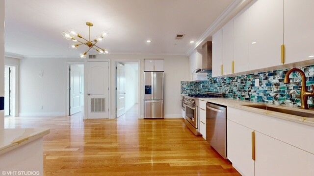 Open the door to a HUGE open space/layout of living room, dining & brand new Kitchen, with all new stainless steel appliances, which includes a commercial stove, with a pot filler, dishwasher, microwave, and washer/dryer in unit, one full bathroom with soak-in tub/shower. 2 bedrooms each having its own closet & an additional closet in your living room. Central air/heat.