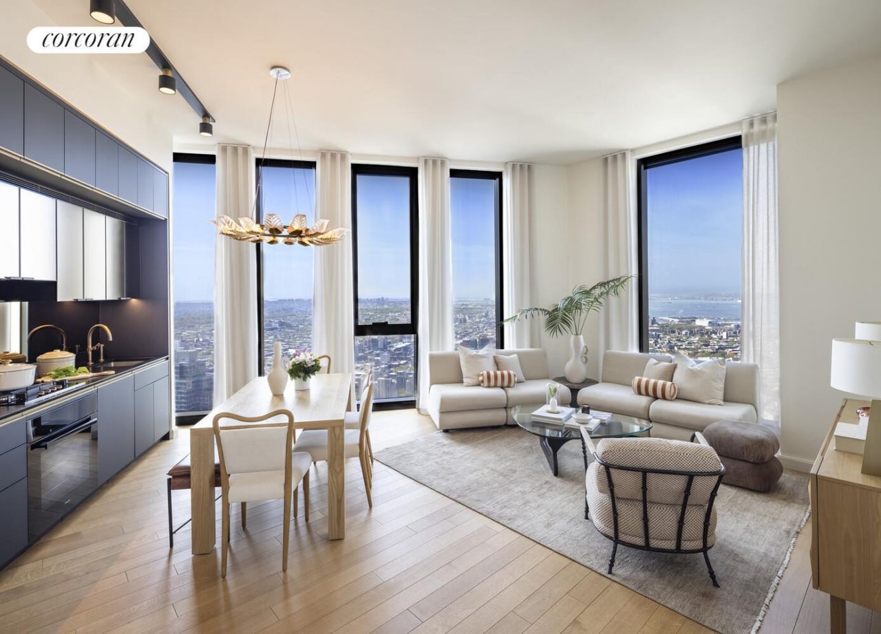 Designed by award-winning SHoP Architects, residence 69G is a generously proportioned 1,172 SF south-facing two-bedroom, two-bathroom home with ceiling heights up to 11 feet. Expansive floor to ceiling windows let in an abundance of natural light, framing dynamic views of the Brooklyn and the New York Harbor.