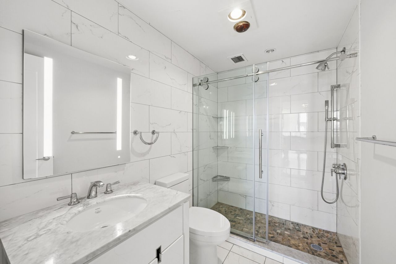 Beautifully renovated, south facing 2 bedroom residence with open East River and United Nations views through wall to wall windows. A spacious living room and dedicated dining area offer an elegant layout for both everyday living and entertaining. The upgraded kitchen features stainless steel appliances , custom cabinetry, and Quartz countertops. Both bathrooms have been fully renovated with contemporary, high quality materials, including marble vanities and extra heating elements. All closets have been customized and built out to the highest quality to maximize storage in each room as well as the foyer.