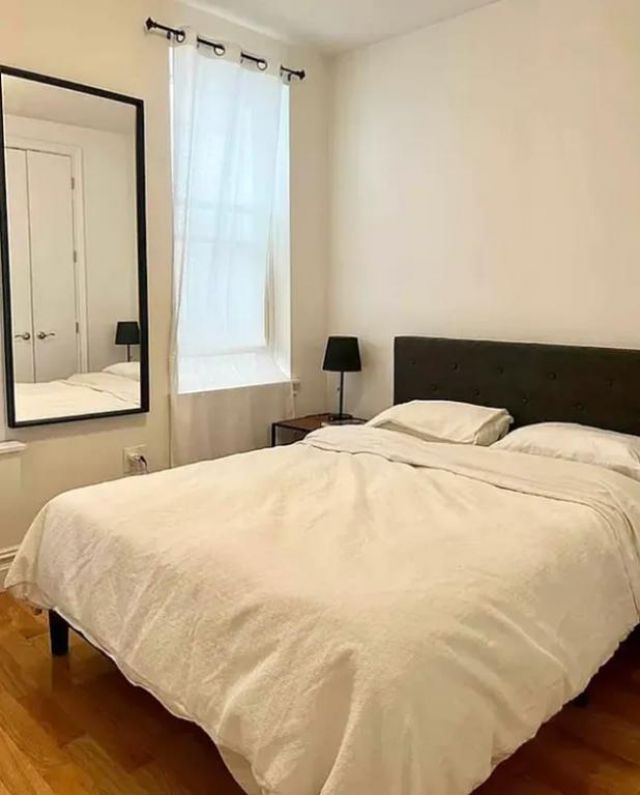 This unit features high ceilings, a windowed kitchen with stainless steel appliances, bedroom has two large closets, can fit a queen size bed comfortably, and a marble bathroom.
